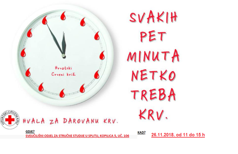 7. akcija dobrovoljnog darivanja krvi Pozivamo studente i djelatnike Sveučilišta u Splitu, naše drage članove i sve ostale zdrave osobe